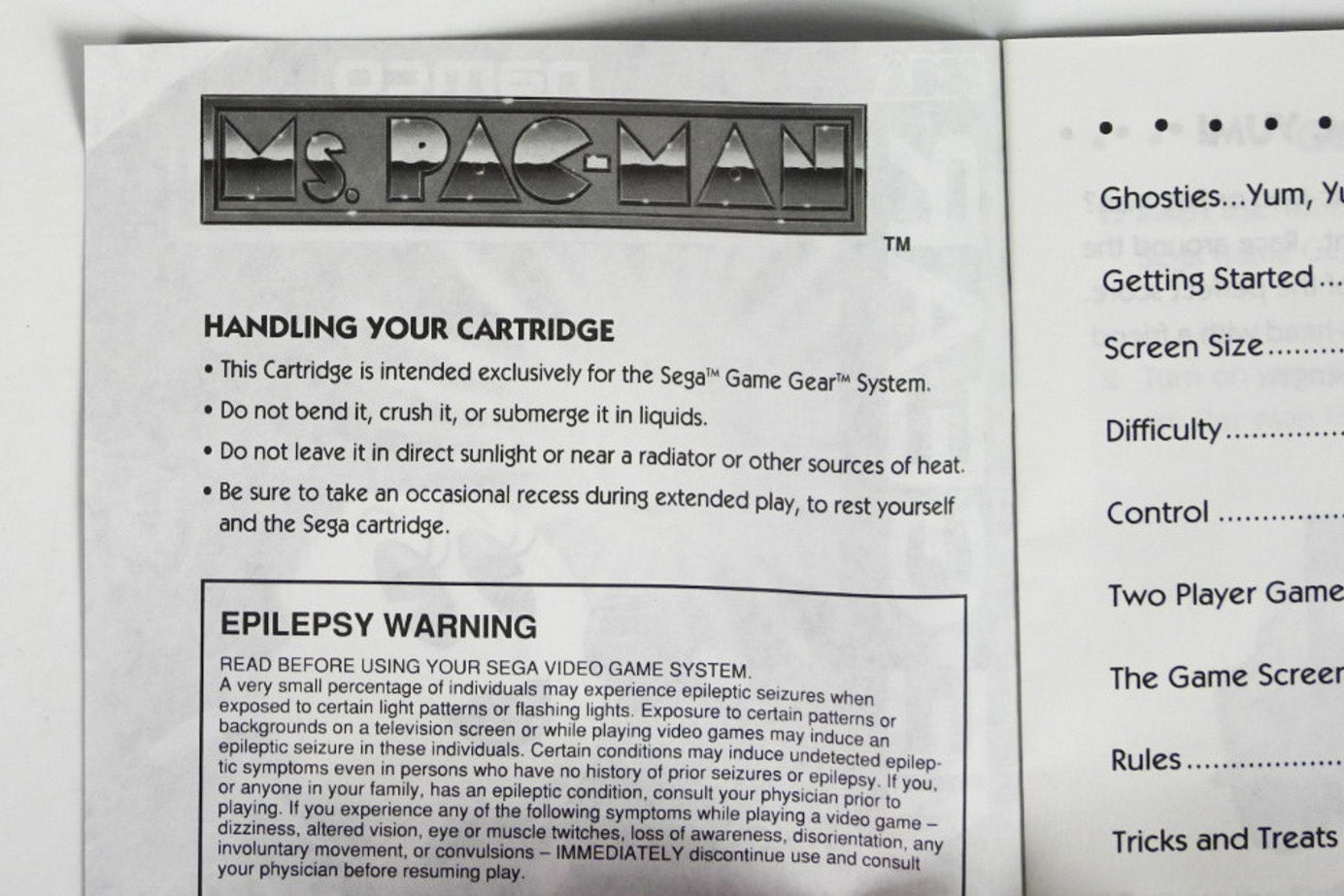 Ms Pac Man [Manual] (Sega Game Gear)