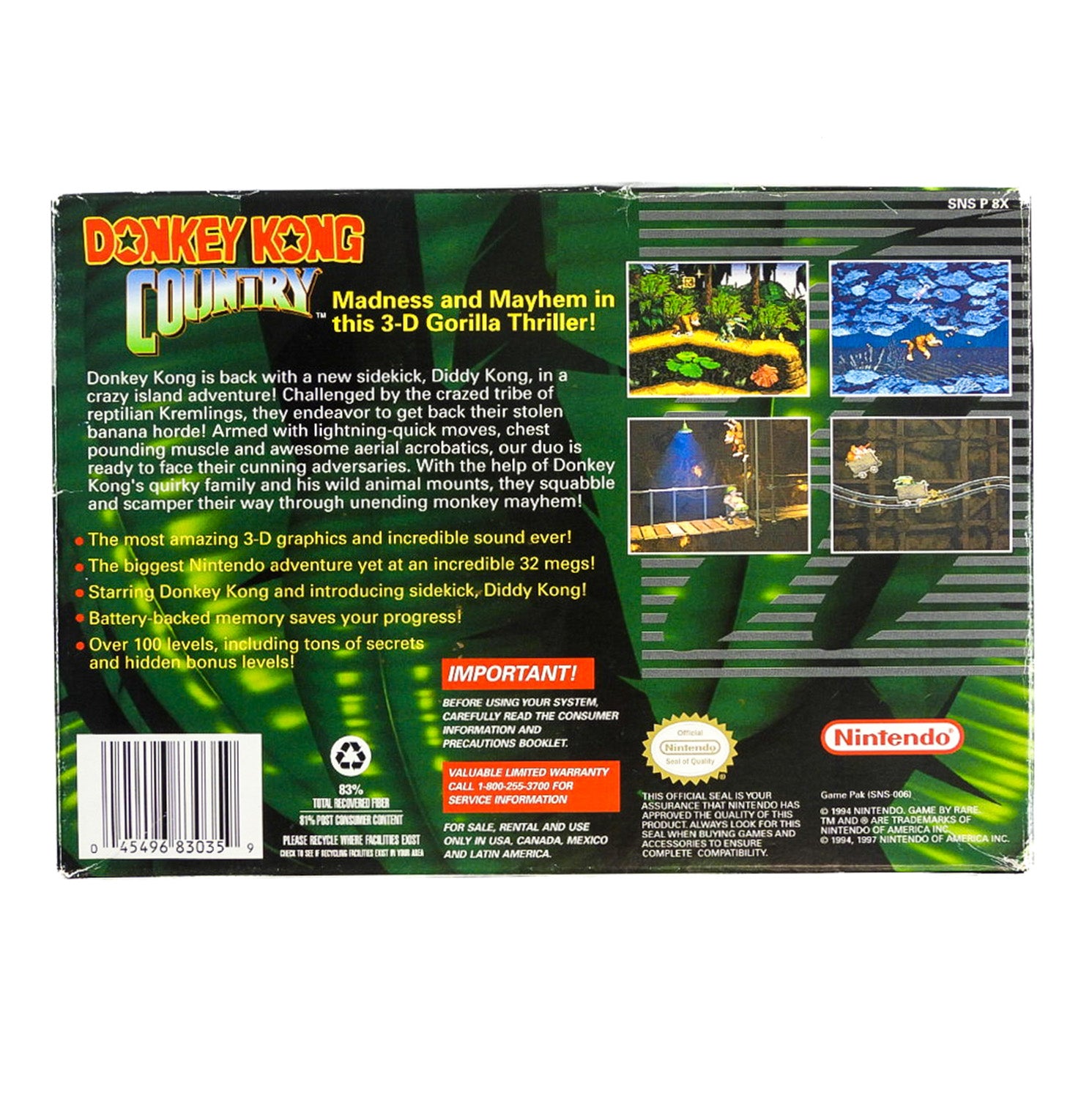 Donkey Kong Country [Player's Choice] (Super Nintendo / SNES)