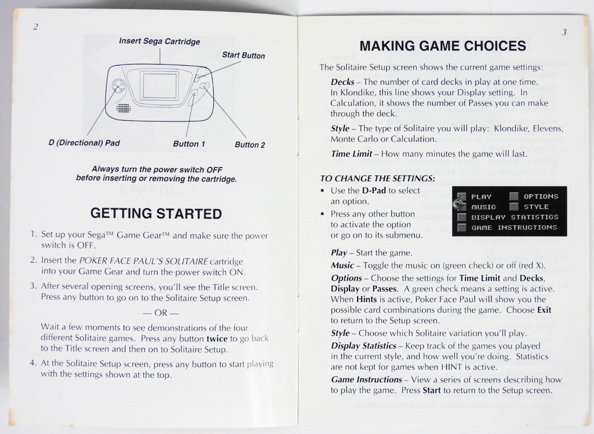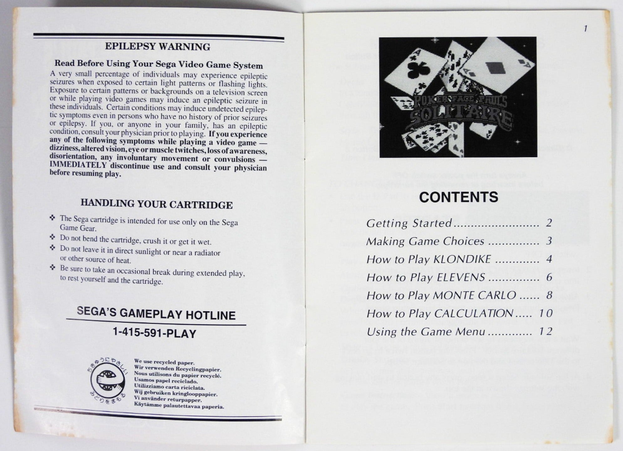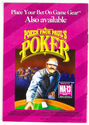 Poker Face Paul's Solitaire [Manual] (Sega Game Gear)