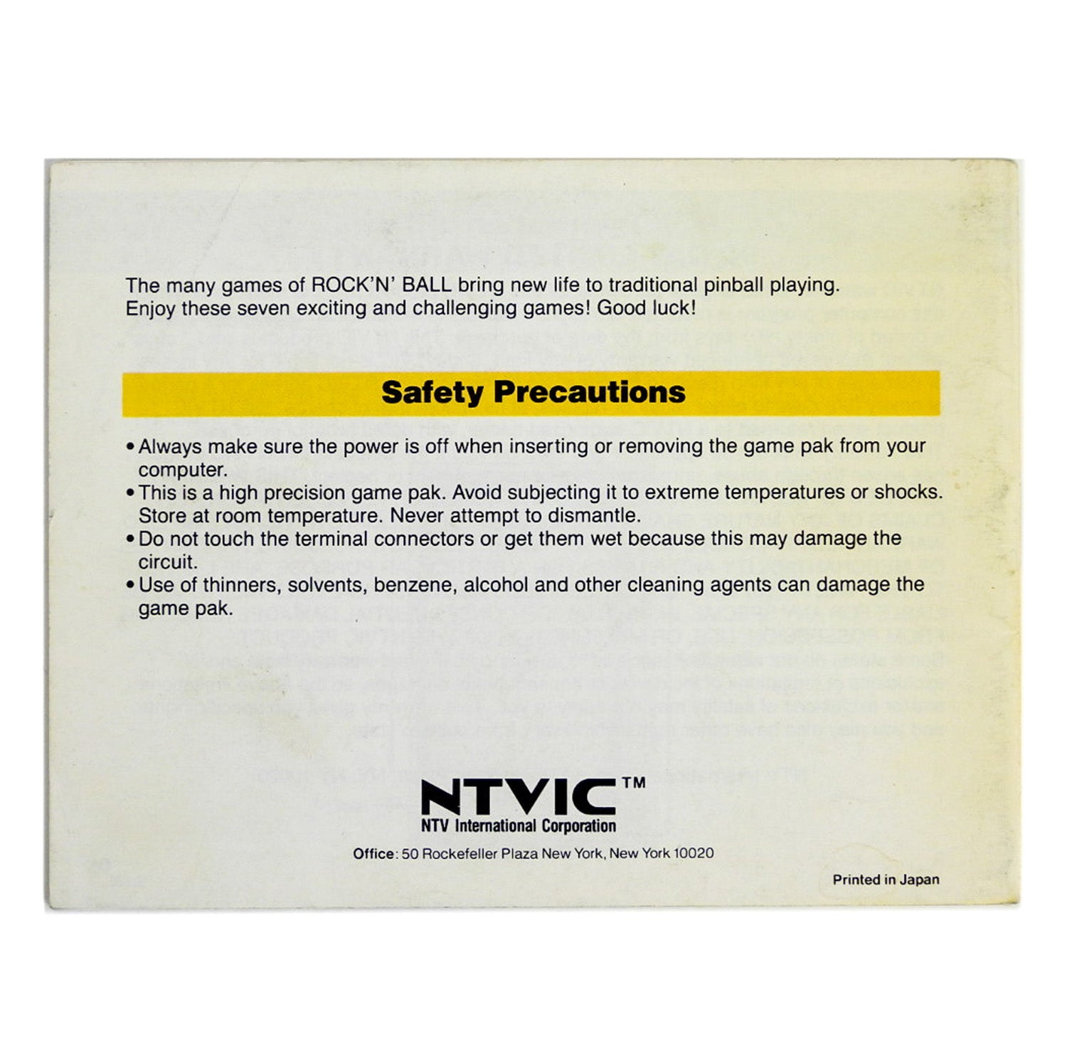 Rock 'n Ball [Manual] (Nintendo / NES)