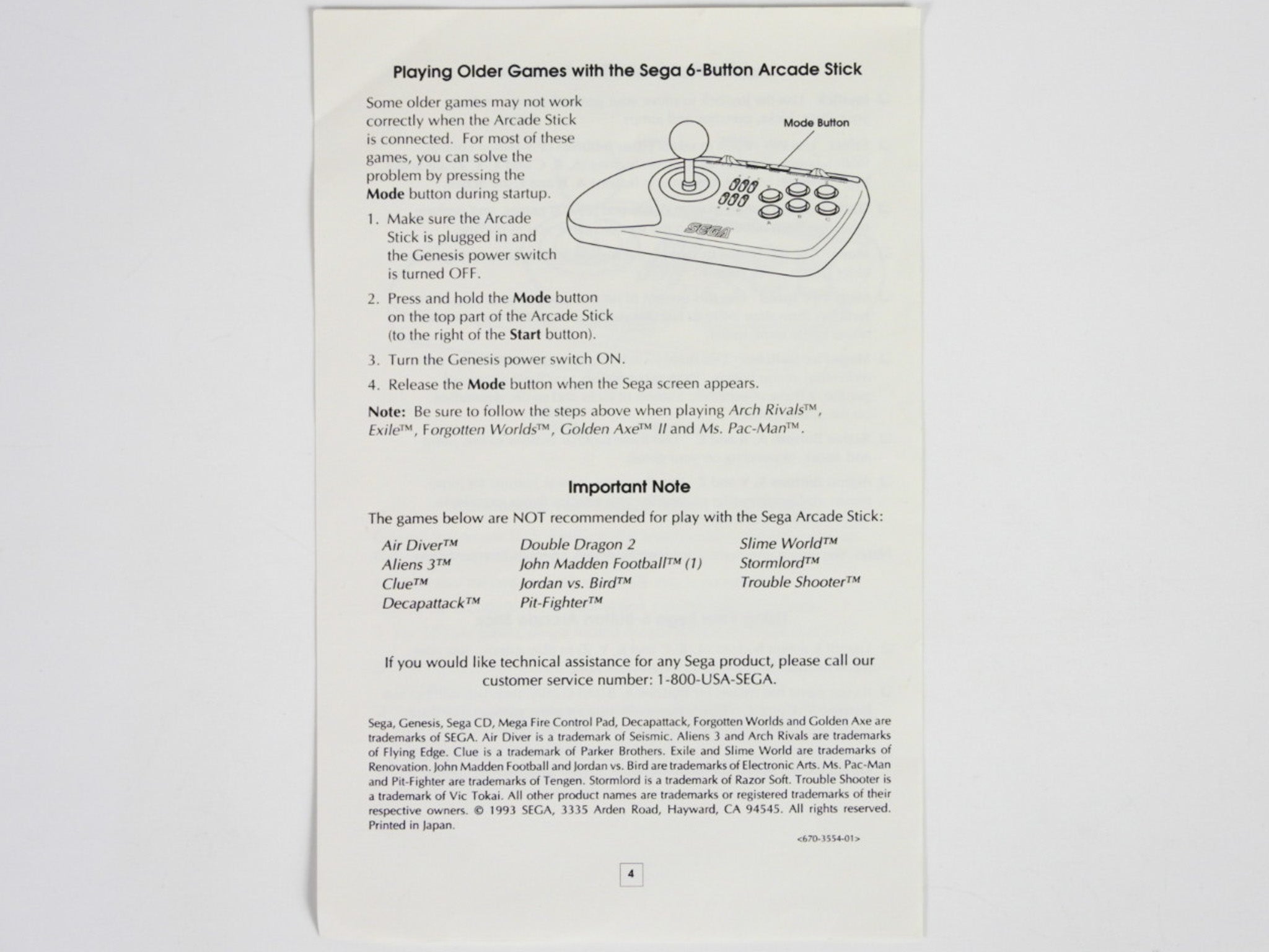 Sega 6-Button Arcade Stick [Manual] (Sega Genesis)