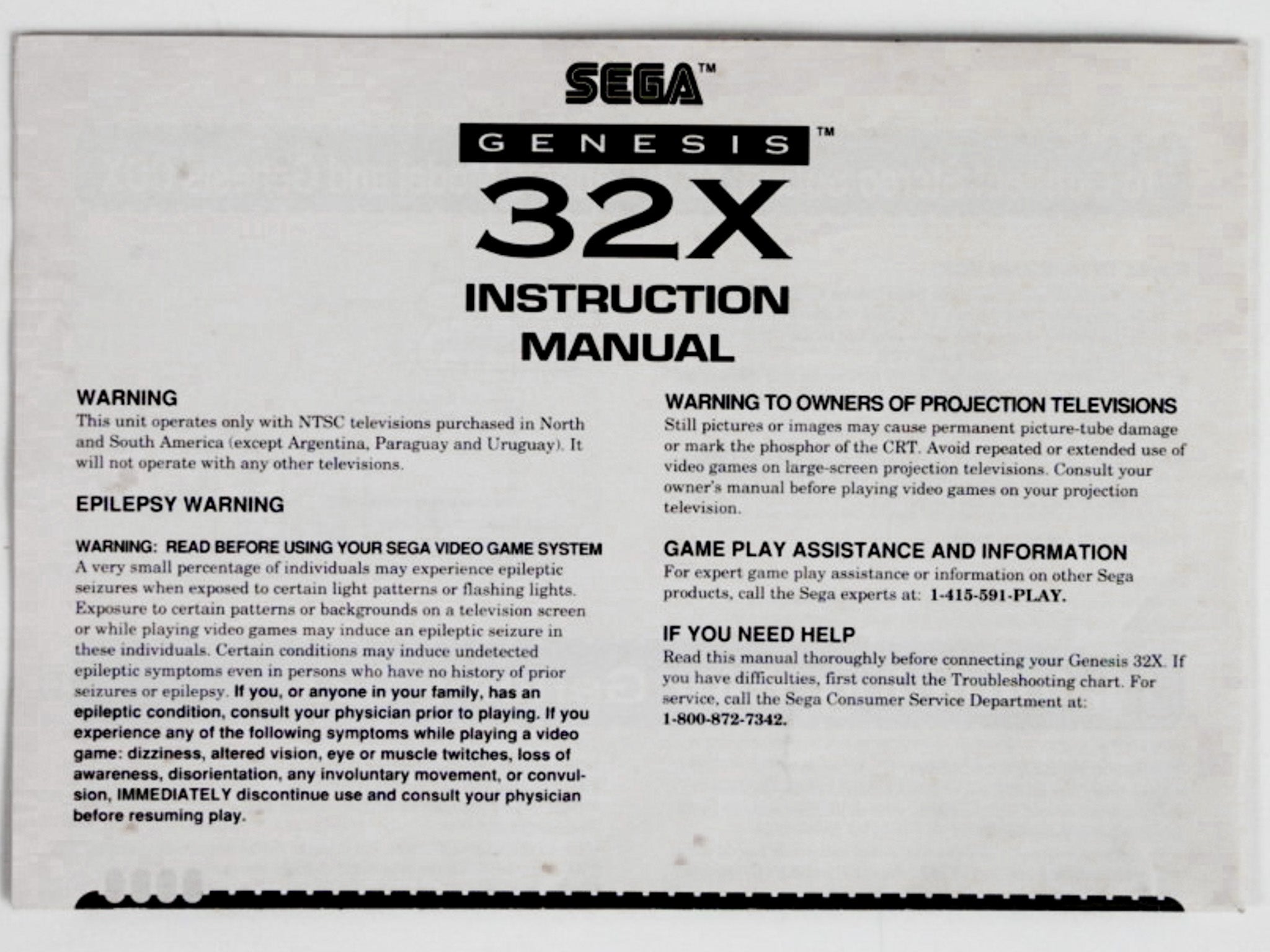 Sega Genesis 32X Instruction [Manual] (Sega 32X)