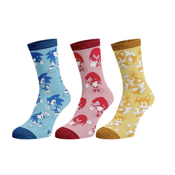 Ensemble de 3 Paires de Bas Sonic Knuckles et Tails Désign Original SEGA